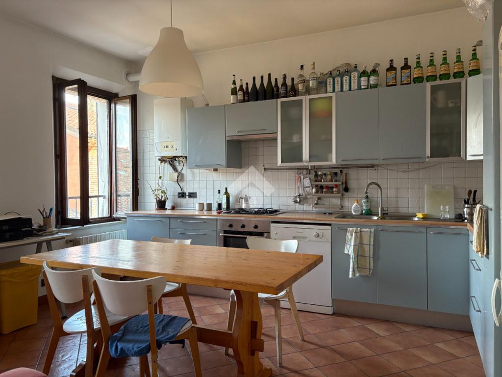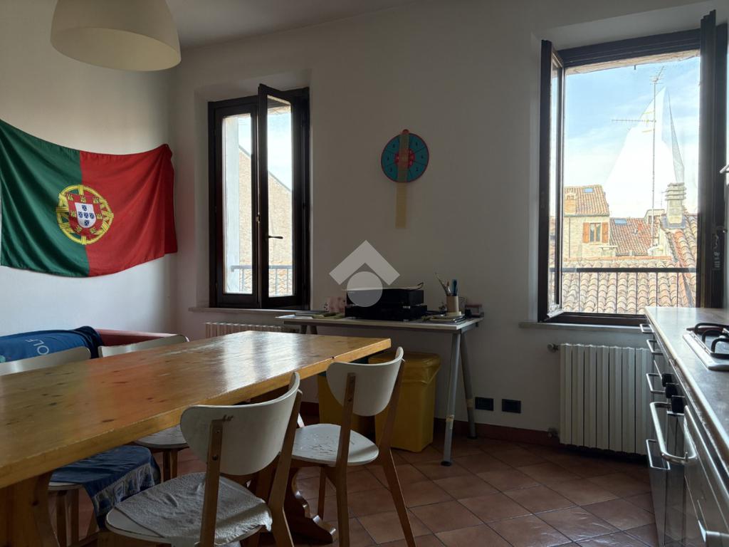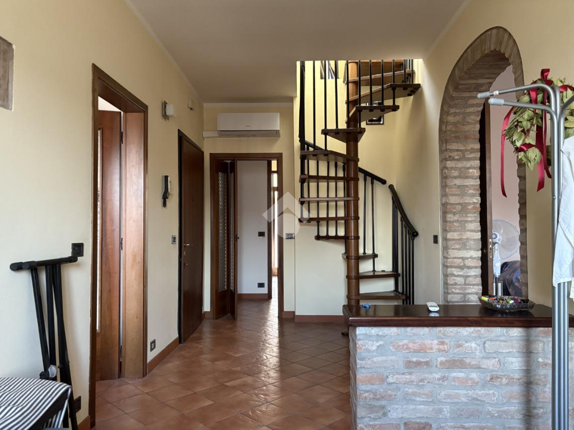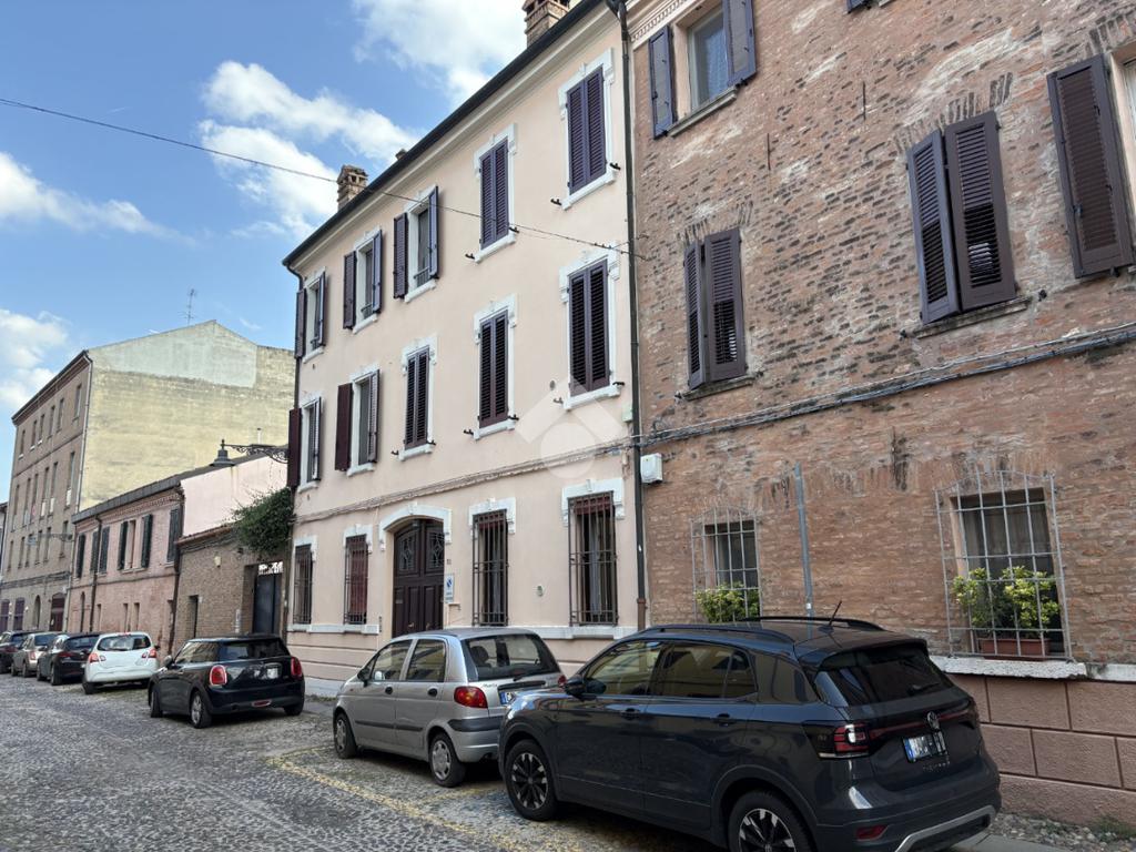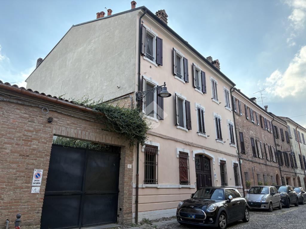 In Via Ghiara, nel cuore del centro storico di Ferrara, in una zona tranquilla e poco trafficata comoda a tutti i servizi e zone universitarie, appartamento al secondo e ultimo piano con taverna e cantina al piano terra, inserito in un contesto di sole due unità abitative con ingresso comune dall’androne.