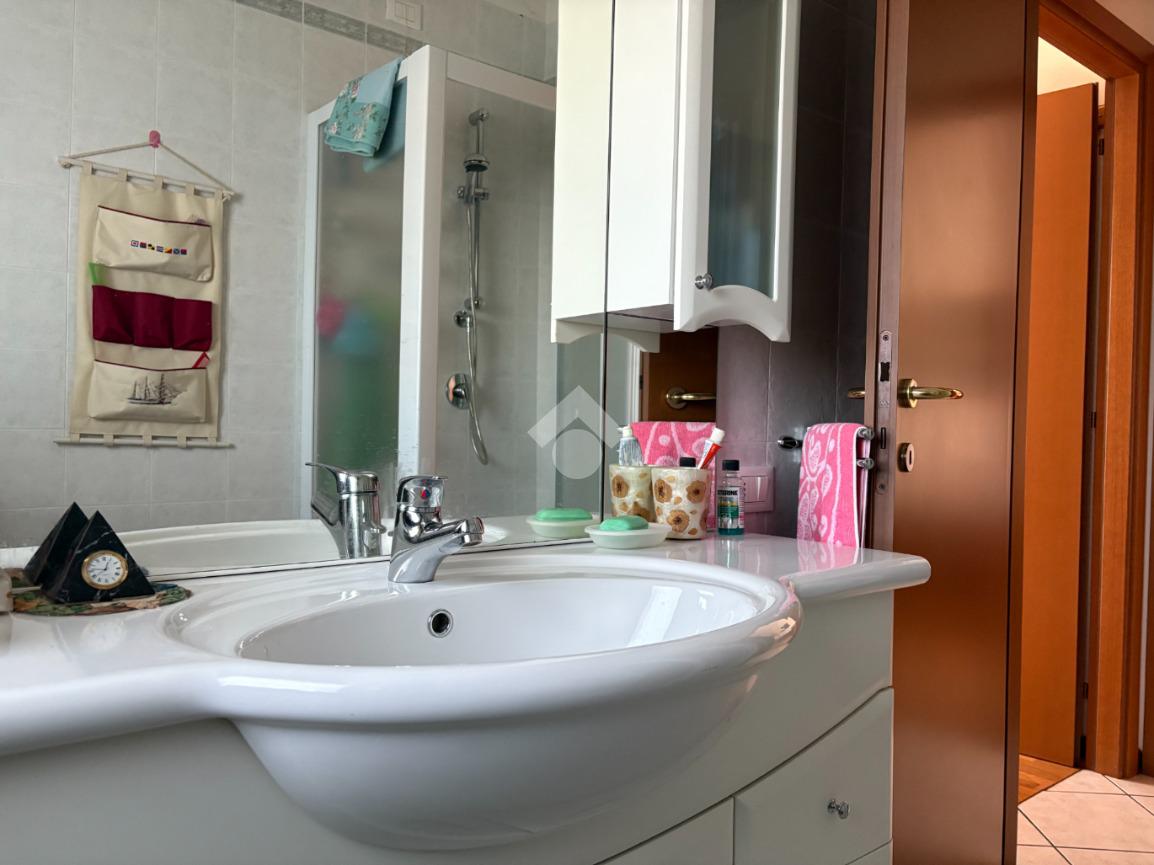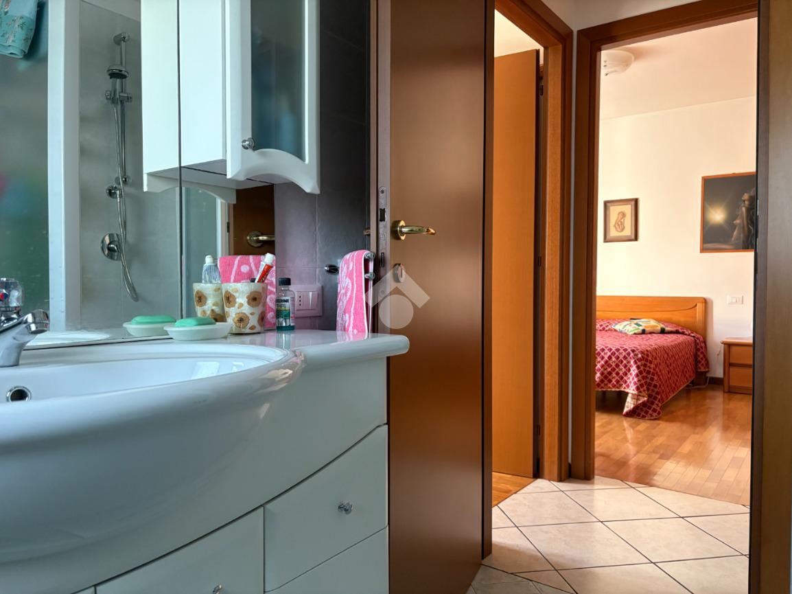 L’ingresso si apre su un ampio soggiorno, affiancato da una cucina abitabile con accesso al terrazzo. Sempre nella zona giorno è presente un primo bagno con antibagno, spazio in cui è possibile ricavare una piccola zona lavanderia.