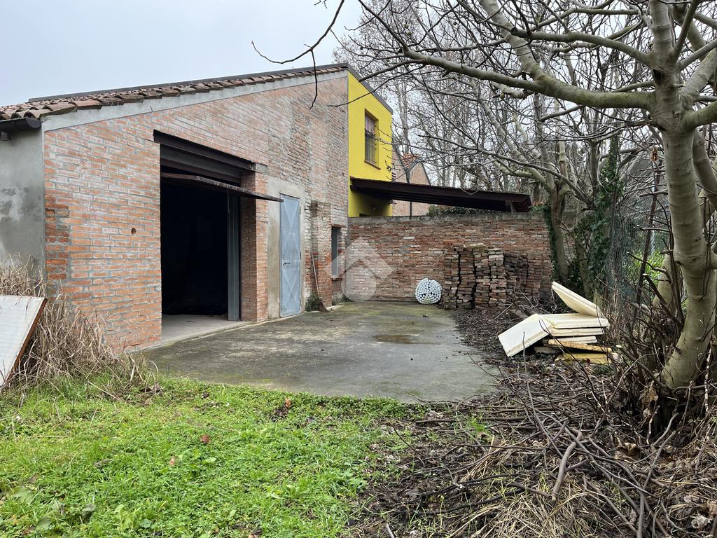In una delle zone più ricercate e tranquille di Ferrara, a Pontegradella, magazzino libero su tre lati, circondato da un giardino privato che si estende su due lati della proprietà.