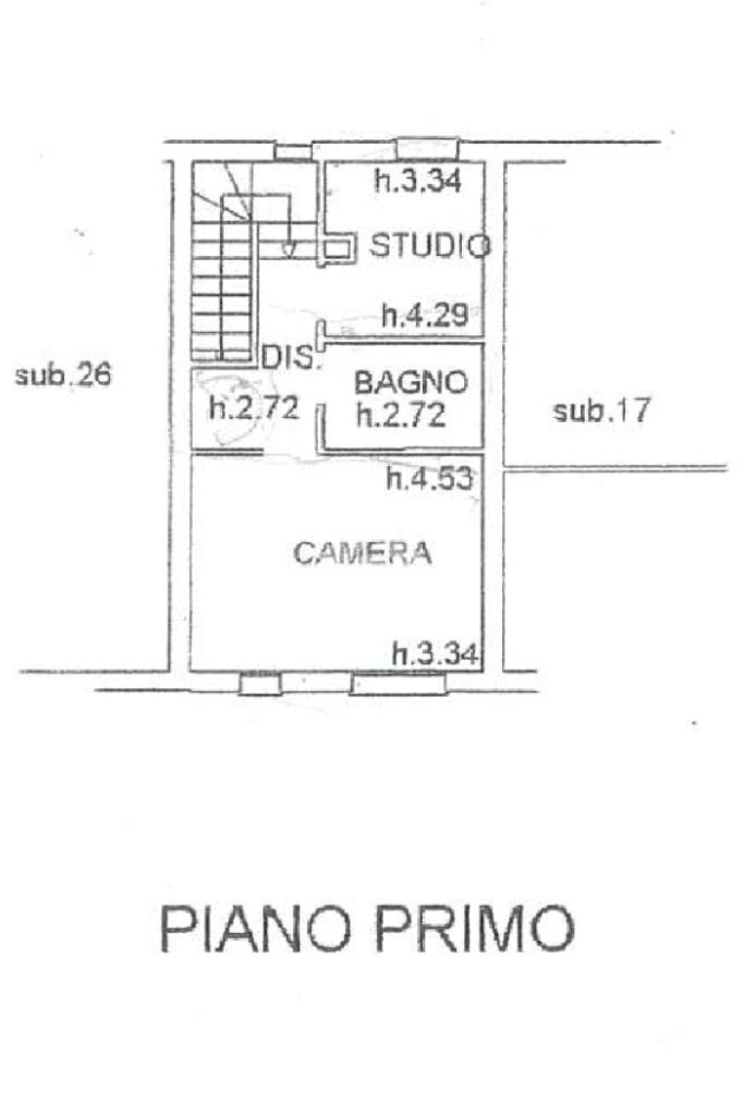 Al piano superiore si sviluppa la zona notte, composta da un disimpegno che collega lo studio, il bagno con doccia e una spaziosa camera matrimoniale.